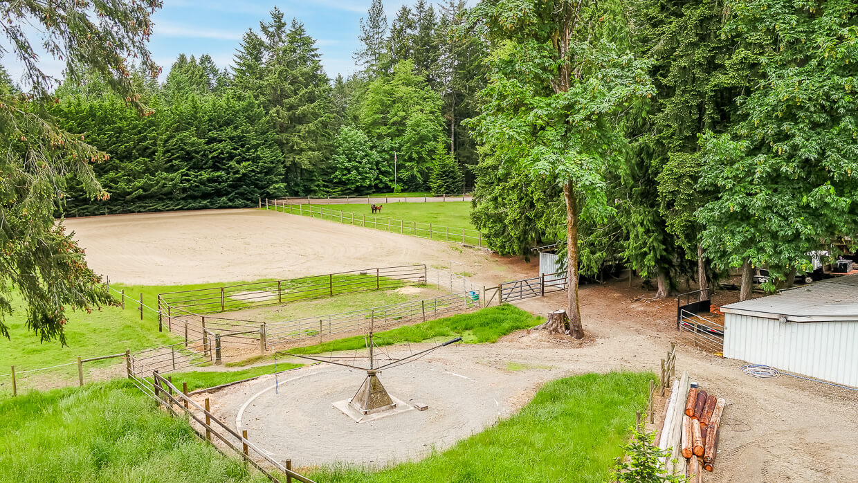 Thoughtfully designed working equestrian property on 15 private park-like acres. Rolling pastures surround two residences on three separate parcels. Main home is expansive 3,200+ sq. ft. single story rambler with 2 beds and 3 baths. Second residence is 1,296 sq. ft. 3 bed 1 bath. Well lit, 60′ X 112′ indoor riding arena with attached 8 stalls, tack room, groom stall with overhead radiant heaters & hot water wash rack. 120′ X 200′ outdoor riding arena and hot walker. Graze horses and livestock on the acres of green pastures with 3 loafing sheds. 24′ X 36′ heated woodshop/storage building wired for 220&110, 24 covered parking spaces for vehicles and equipment. 10,000 gallon water tank for watering mature landscaping, pastures & arenas.