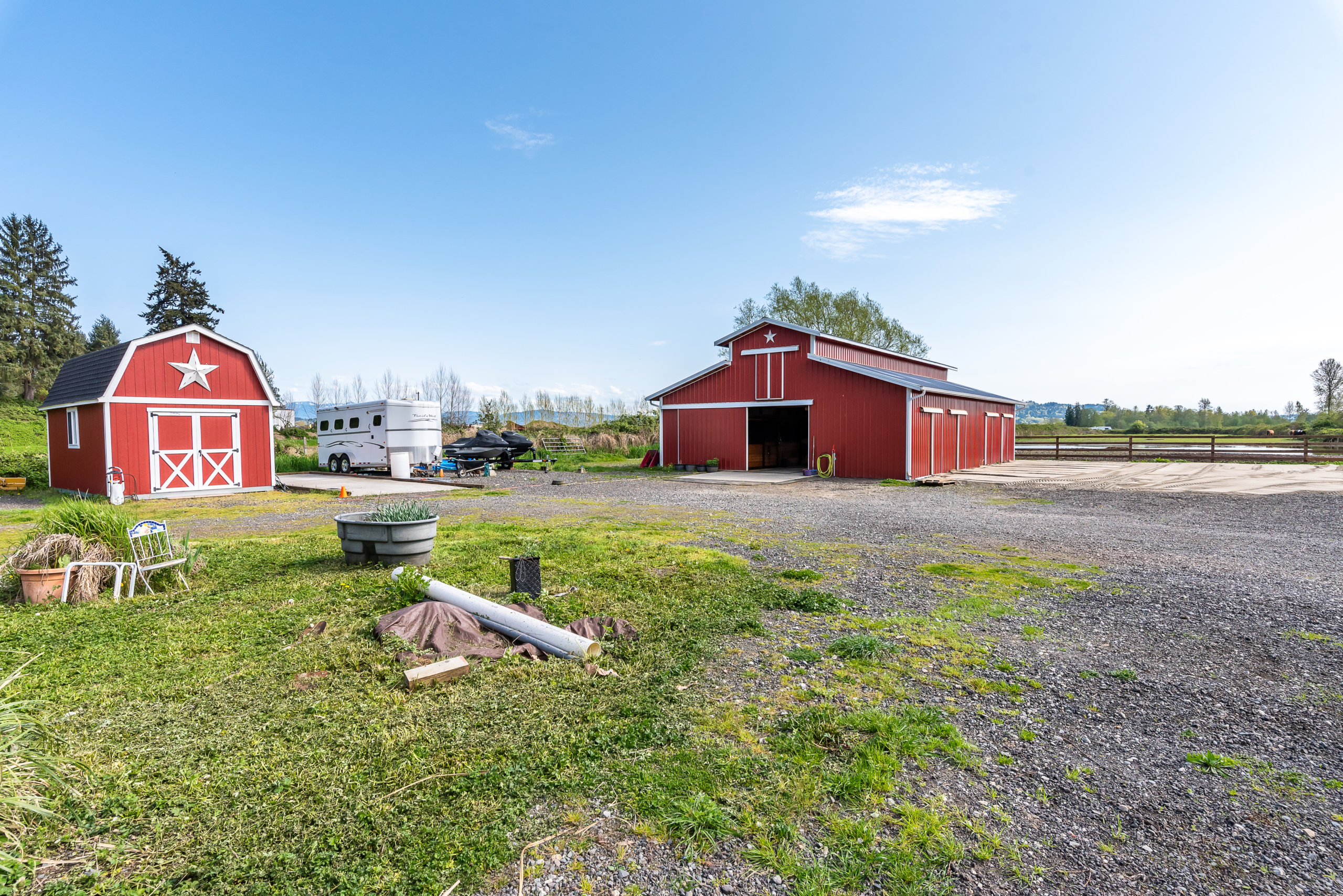 New Snohomish Equestrian Property! Shy 5-acre equestrian property just minutes from town. 1674 sq ft home with 2 bedrooms, 1.5 bath with a newly completed downstairs bonus room and half bath. French doors open onto the huge sunny deck that overlooks the hobby farm’s acreage. 8 stall barn with hayloft, wash rack, tack room, and ready for runs off of each stall! Additional 4 stalls are located in the shed-row and there is a large garden shed for additional storage. Fenced pasture, gated entry, attached 2 car carport, ample parking, room for gardening, concrete slab for living quarters horse trailer or RV parking, and a large lawn. The location is exceptional; close to US-2, dining, shopping, and schools, and just up the road from Pilchuck Animal Hospital.