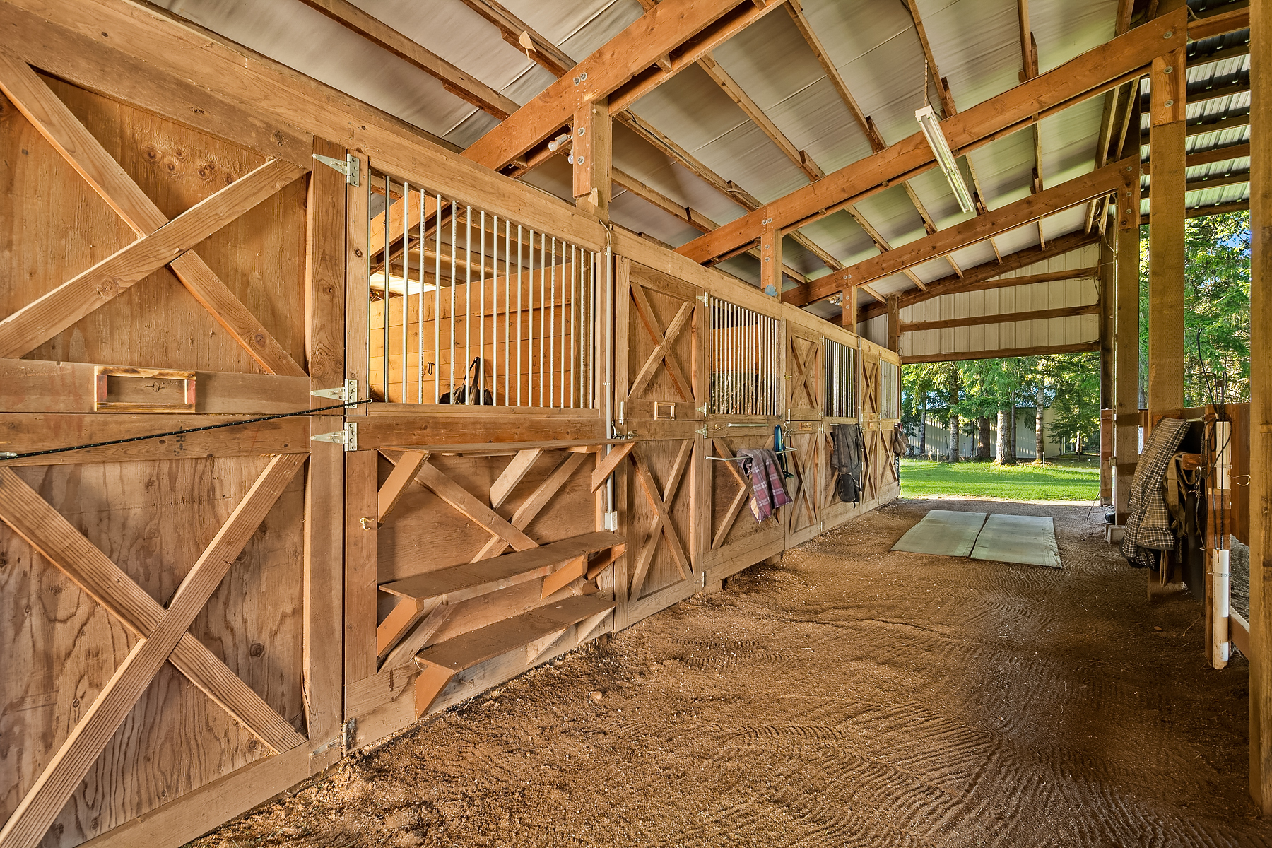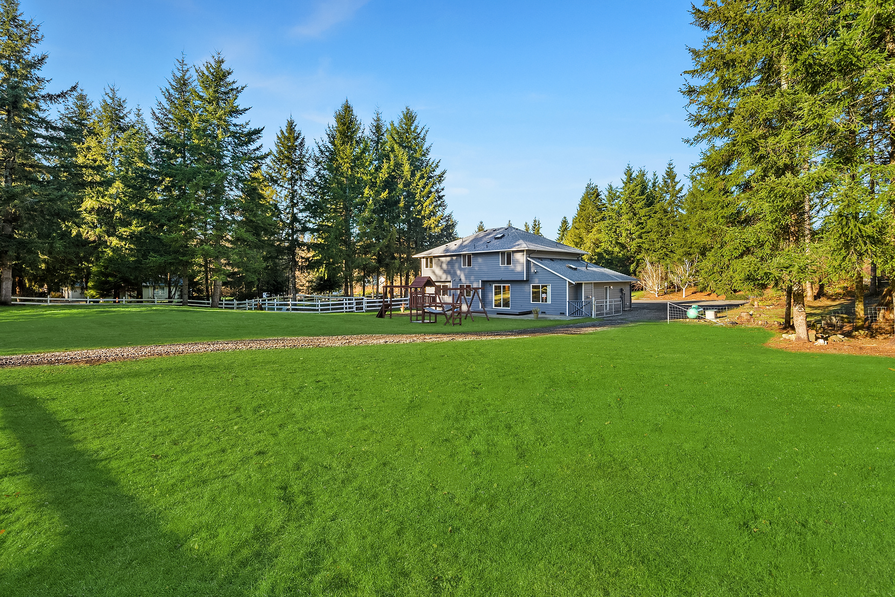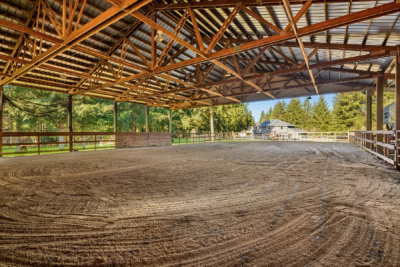 Equestrian living in Star Creek Estates. Level 4+ acres located on a quiet street of acreage homes. Fenced and cross fenced pastures, 60 x 120 partially covered sand footing arena with an adjoining 4 stall barn, run-in sheds on back side of barn and private trails/riding path on back of property. Multiple bay shop, tack room plus hot and cold wash rack. New interior and exterior paint, new flooring throughout. Living room/dining room combination, Great room kitchen with new appliances and propane fireplace in adjacent family room. Upper level master suite with sitting area and 5 piece bath, 3 additional bedrooms with full bath. Dog run and room to roam on this turn key horse property in convenient location offering easy freeway access.