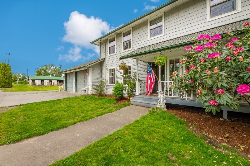 Priceless, many-facetted, private, quiet, and serene 40 acres with spectacular Mt Baker View. End of the road privacy, 3300 sqft country contemporary, 1994, 4 large bedrooms/4.75 bath, 2 primary bedrooms, AC, natural gas, city water, 50 year roof. Attached 2 car garage. Plus 3bd/1.75 1998 manufactured home. The 9000 sqft outbuilding has a heated conference room, restrooms, AC, guest quarters, colossal office and excellent storage for RV and horse trailer. All of your toys. 6 stall barn with 20+ ton hay storage, + 60×36 barn with stalls, outdoor runs, hot water, tack room, round pen, outdoor arena, riding trails, hay field, cross fenced. Only 5 minutes from food and shopping and 10 minutes to the Bellingham airport!