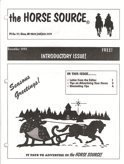 In 1995 I was working for a customs broker in Blaine, Washington. My interest in computers was growing, so when I saw the need for information getting to customers and staff, I decided to build a company newsletter. That’s when the idea of a newsletter focused on horses was born. My passion for horses spawned an interest in sharing information with horse owners. Getting the newsletter sponsored was easy, as horse-related businesses realized the need to be seen.