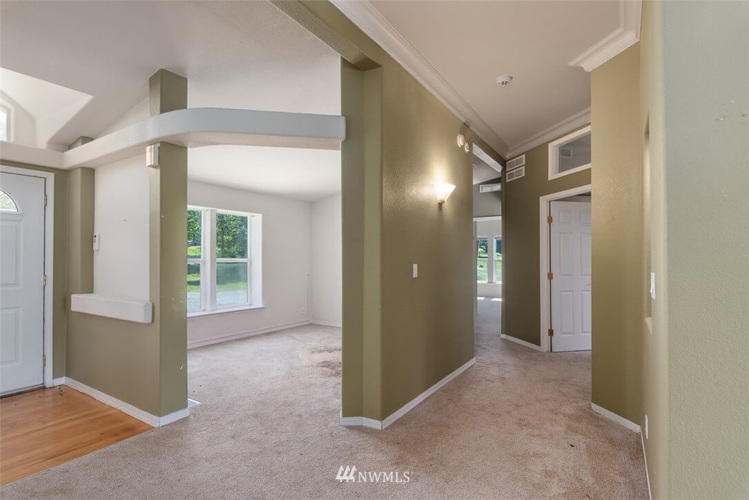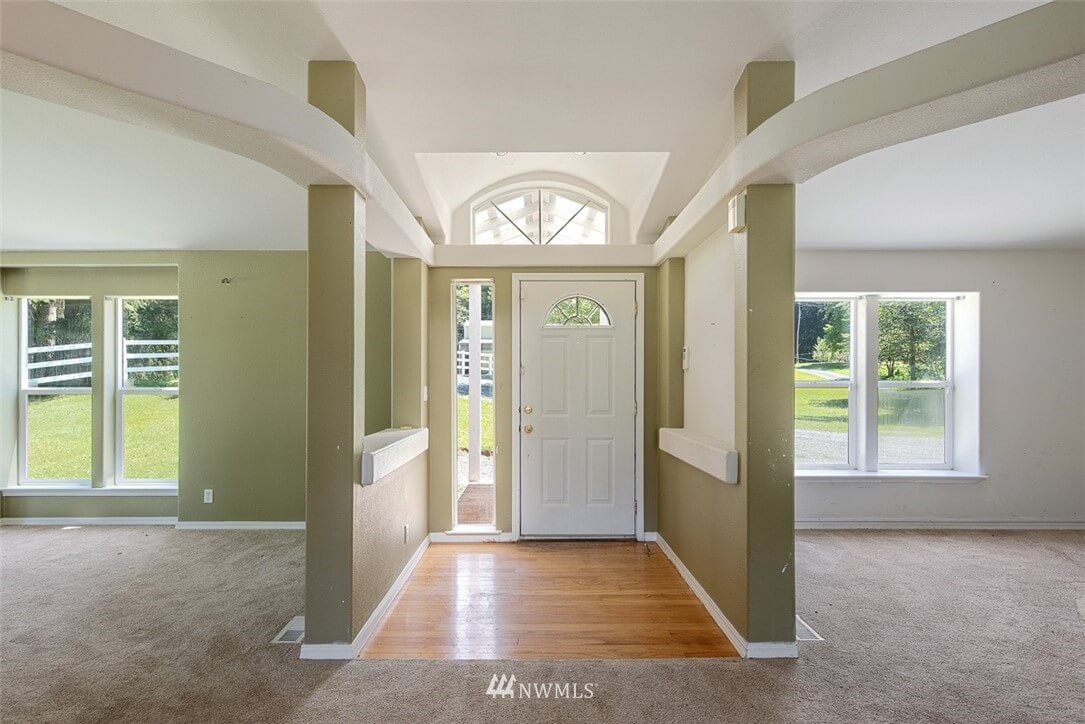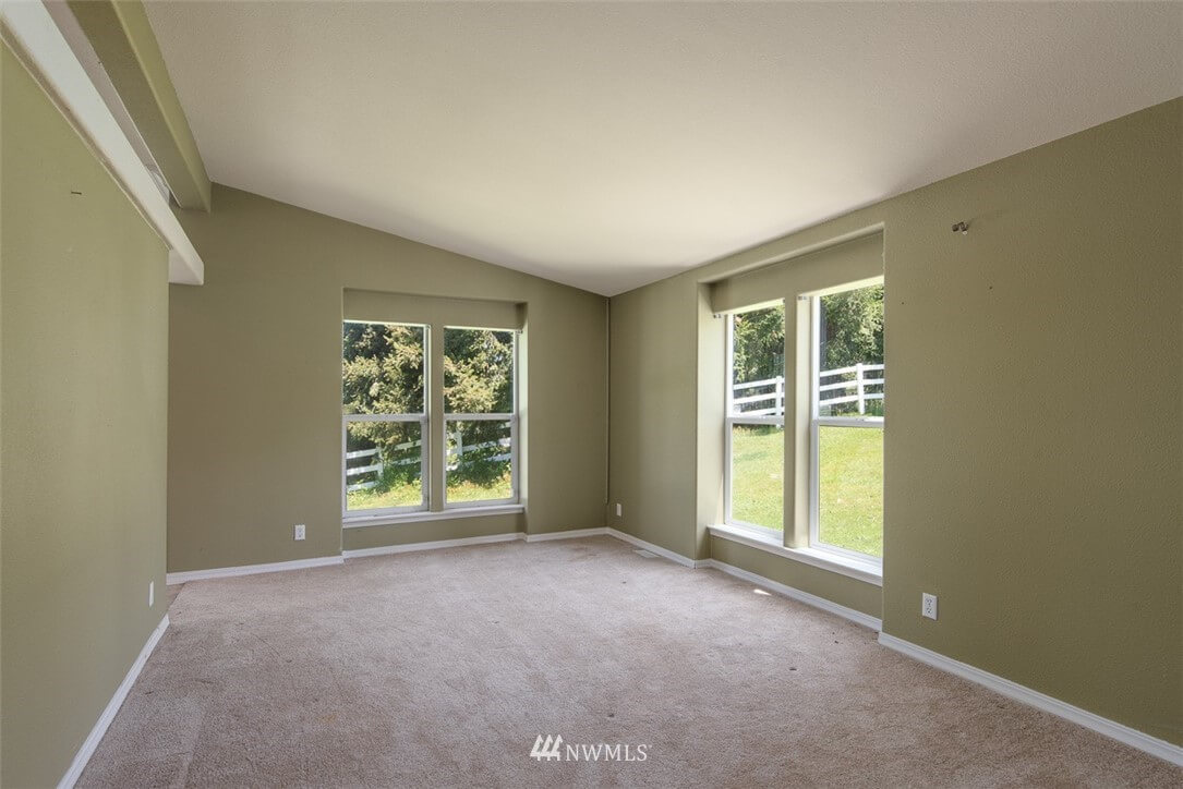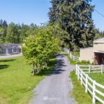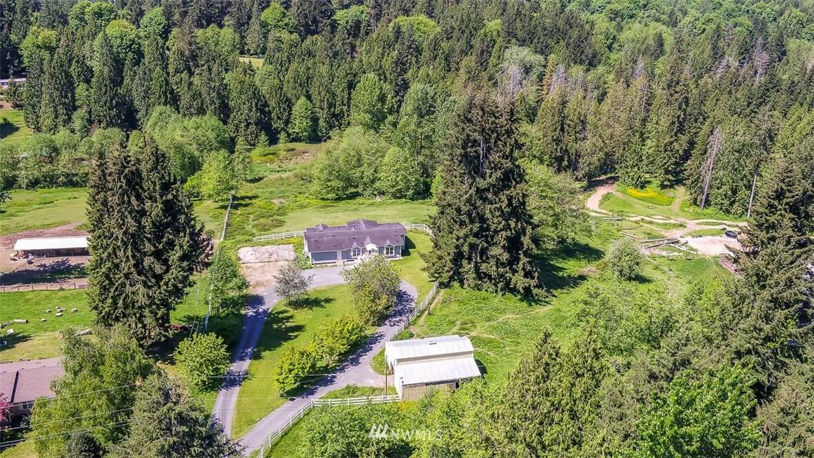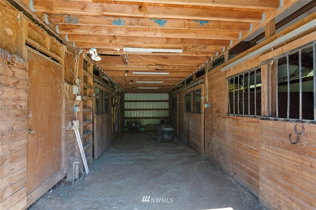 Peaceful hobby farm with a large manufactured home on 5 fenced acres. 2640 square feet, open floorplan, high ceilings, huge rooms, master suite with a bath off master, and an office that could easily be used as a third bedroom. Formal dining room, picture windows, and ample living space. Sit on the back deck and drink in the bright and sunny scenic pasture below, fenced in white vinyl. Concrete slab in place for parking or building a garage. Livestock barn has 5 stalls, 2 of which are oversized birthing stalls, and a tack/equipment room. Plenty of room for gardening, livestock, or a multitude of other hobbies.