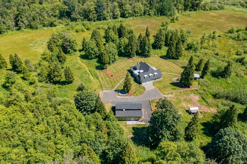 Picturesque country estate positioned on 50 acres of rolling pastureland on the West side of Whatcom County. Custom built in 2019, this home is a true masterpiece with high end finishes throughout its modern farmhouse design. High ceilings, custom cabinetry, radiant floor heat, theatre room and each bedroom has its own bathroom. Separate two-bedroom guest house over 3 bay shop. Long paved driveway well off the road for ultimate privacy. With 45 useable acres there are many areas to build your own covered arena and barn plus adequate pasture space to fence and cross fence. Quiet, peaceful, country setting and yet easy access to I-5 and Canada to the North. 4205 Arnie Road Blaine WA 98230. Contact Tresie Wiersma for more details.
