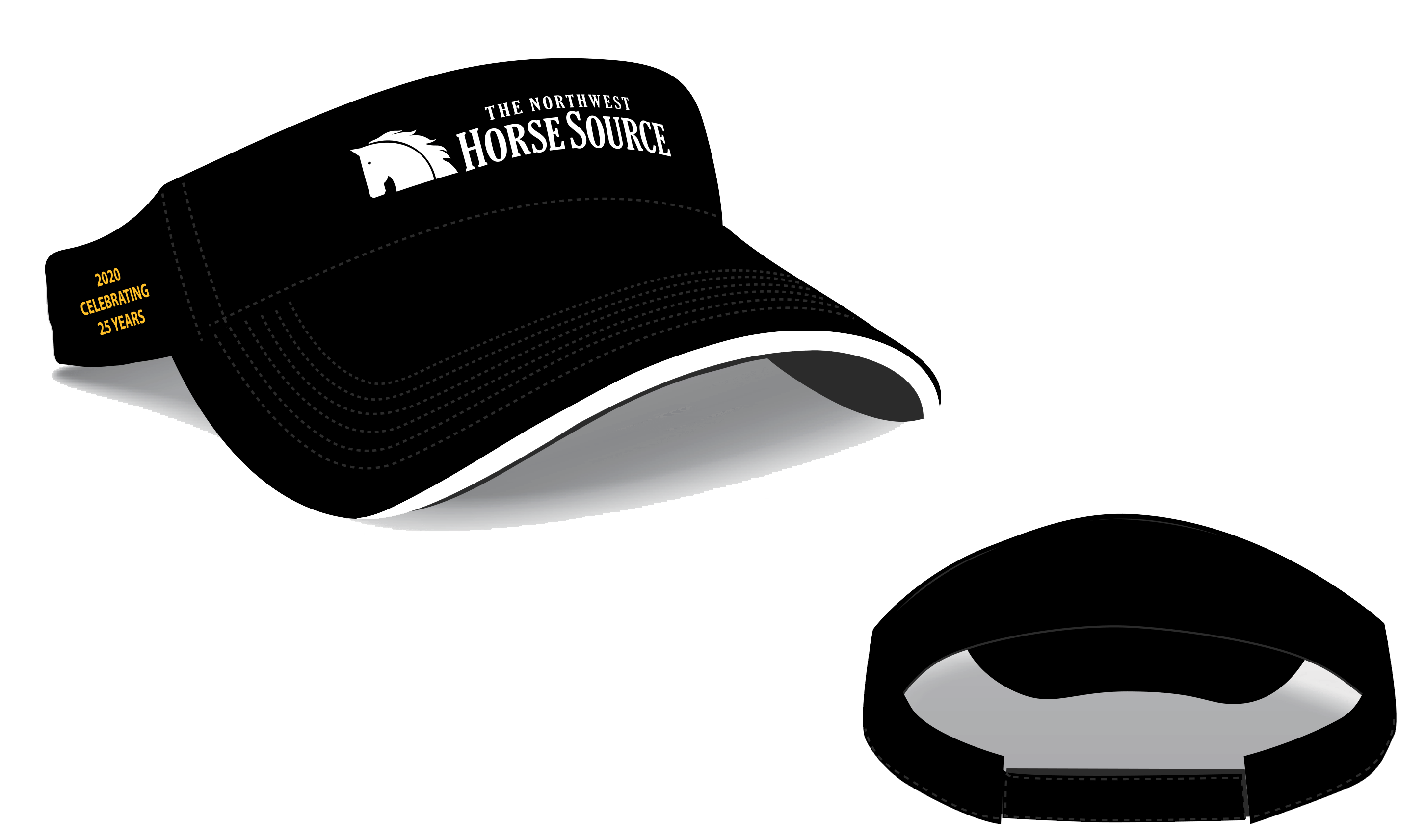 Help us celebrate by ordering your commemorative hat or visor. Enjoy a beautiful, quality brushed heavy cotton hat or visor, with a fabric touch strap. The logo and text is embroidered so it will last for years to come. Thanks for supporting the Northwest Horse Source!