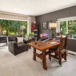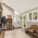 On the Park at Pikes Peak, Bridle Trails. A timeless Northwest design blends harmoniously on this 1 acre setting. Floor to ceiling window walls allow the outside in with a forested backdrop and uncompromised privacy. Sensational style with rich finishes, wood beamed ceilings and unique spaces throughout the home making this property one of a kind. Sprawling lawns, parked out grounds and 3 stall barn with tack room and fenced paddock. Idyllic location down a quiet dead end street and direct trail access from your property.