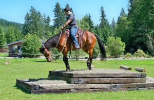 Allowing your horse the opportunity to explore strange obstacles from every available direction lets both sides of his brain become acquainted with the challenges it may present. And because it is necessary to be prepared for a variety of responses, I always encourage visitors at Fire Mountain Trail Course to introduce their horse to new obstacles in hand before mounting up. Exploration from the ground offers greater safety as it strengthens communication skills and builds newer levels of trust between the horse and his human.